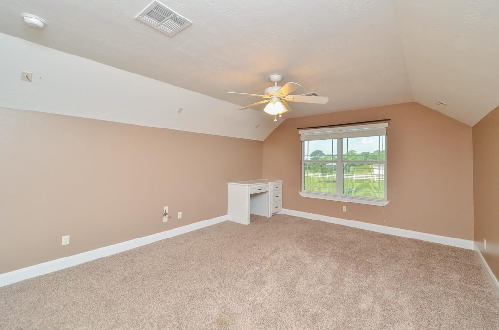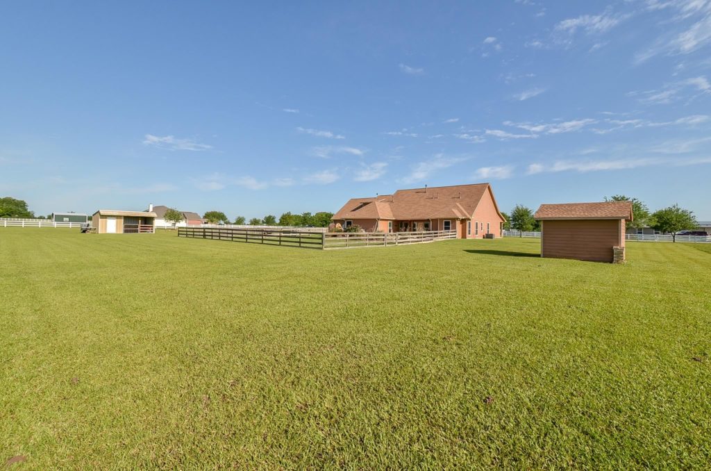 Just a few minutes from 290/99 Grandparkway. There is plenty of room between you and your neighbors at this 4 bedroom, 3-1/2 bath, 3 car garage, custom built home with pool on 2.98 acres in the 7 lot gated community of Equestrian Oaks Estates. Home features tile floors through out the common areas and carpeted bedrooms (Dining Room and Study have Laminate Wood). Living room features a floor to ceiling stone fire place with mantle and an amazing view of the back yard pool. Spacious kitchen with custom built cabinets, granite countertops, tile backsplash, island w/ microwave, breakfast area/bar, double oven and large pantry. 3 Bedrooms down and 1 up. Master bath has his and her sinks as well as his and her closets, large whirlpool tub and separate shower. Back bedroom has a enclosed area with a built in desk that could be used as a sewing room or additional study area. Nice pool area for entertaining and backyard activities. Well house/barn w/ stall for Horse or Ag project. Waller ISD