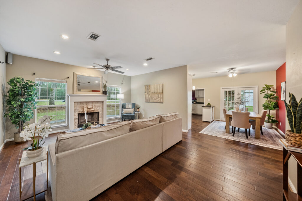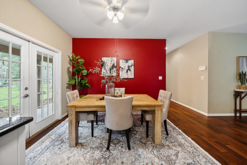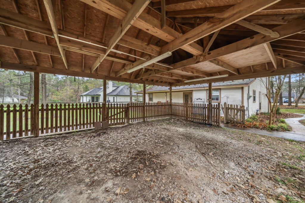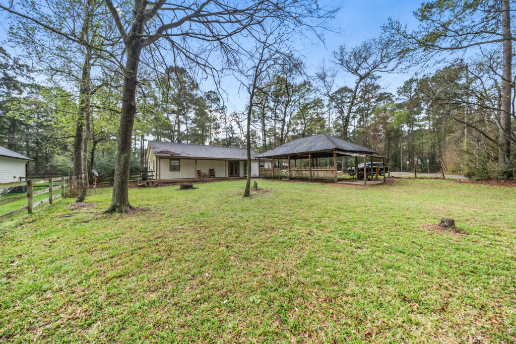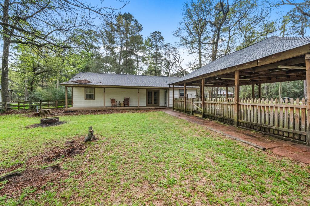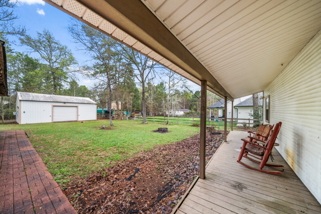 Charming 3-bedroom, 2-bath home on a quiet cul-de-sac in Clear Creek Forest, situated on nearly ¾ acre with beautiful mature trees that provide shade and a peaceful setting. This inviting home features an open-concept layout with a spacious living room centered around a cozy fireplace that flows seamlessly into the dining area perfect for everyday living and entertaining. The kitchen offers granite countertops, stainless steel appliances, and generous cabinet space. Relax on the welcoming front porch or unwind on the back porch overlooking the large, shady backyard. The property also includes an oversized carport and a 24x30 workshop ideal for hobbies, storage, or projects. Enjoy peaceful country living with convenient access to Magnolia, Tomball, and nearby shopping and dining.