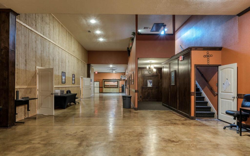 Exceptional opportunity to own 11.318 unrestricted acres featuring a 16,520 SF event center/ballroom built in 2009, ideal for weddings, private events, entertainment, or commercial ventures. The spacious main room is approximately 80x80 and offers an open layout with a raised stage, 17 ft ceilings and a concession serving/bar area perfect for catering operations. The venue features his-and-hers restrooms, abundant ceiling fans, and a thoughtfully designed layout that accommodates large gatherings with ease.